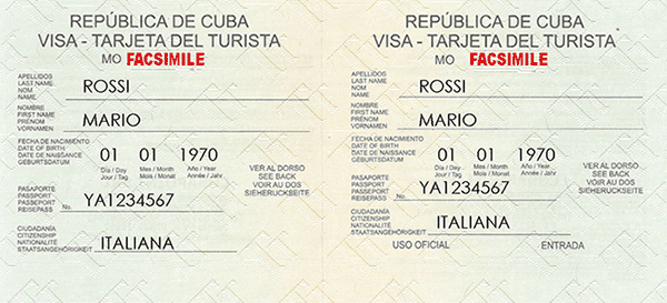 I passeggeri in ingresso a Cuba per turismo, hanno la necessità di essere provvisti di Targhetta Turistica, Assicurazione Sanitaria e Passaporto in con validità residua di almeno sei mesi oltre la durata del viaggio.